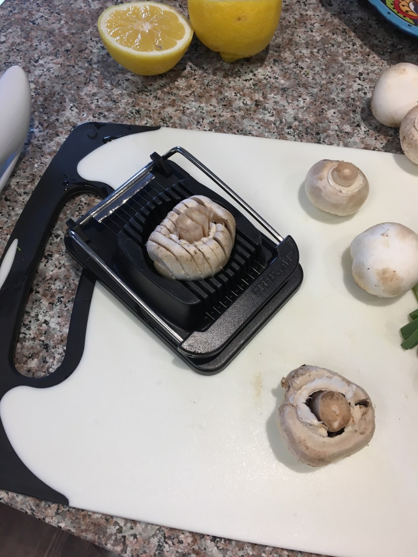 Pro-tip #1- Use your egg slicer to cut mushrooms. Cut the stems off, flip them upside down, and slice! Heyyyy, time-saver!